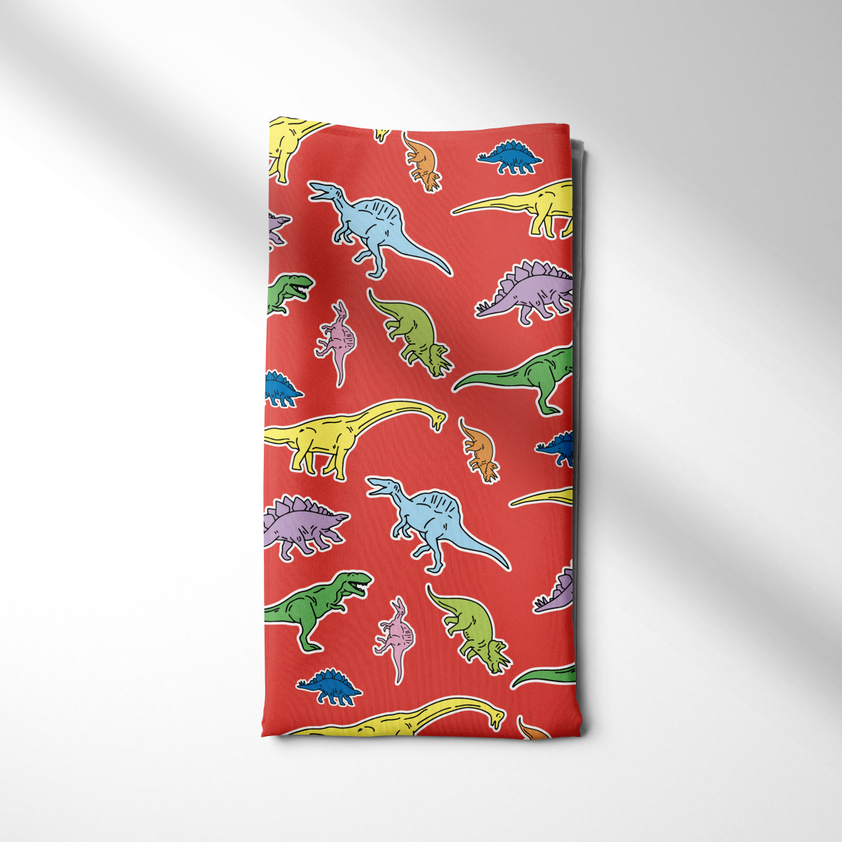 The "Age of Dinosaurs" dog bandana showcases a prehistoric landscape teeming with various dinosaur species, rendered in earthy tones and vibrant colors, ideal for adventurous pets with a wild imagination.
