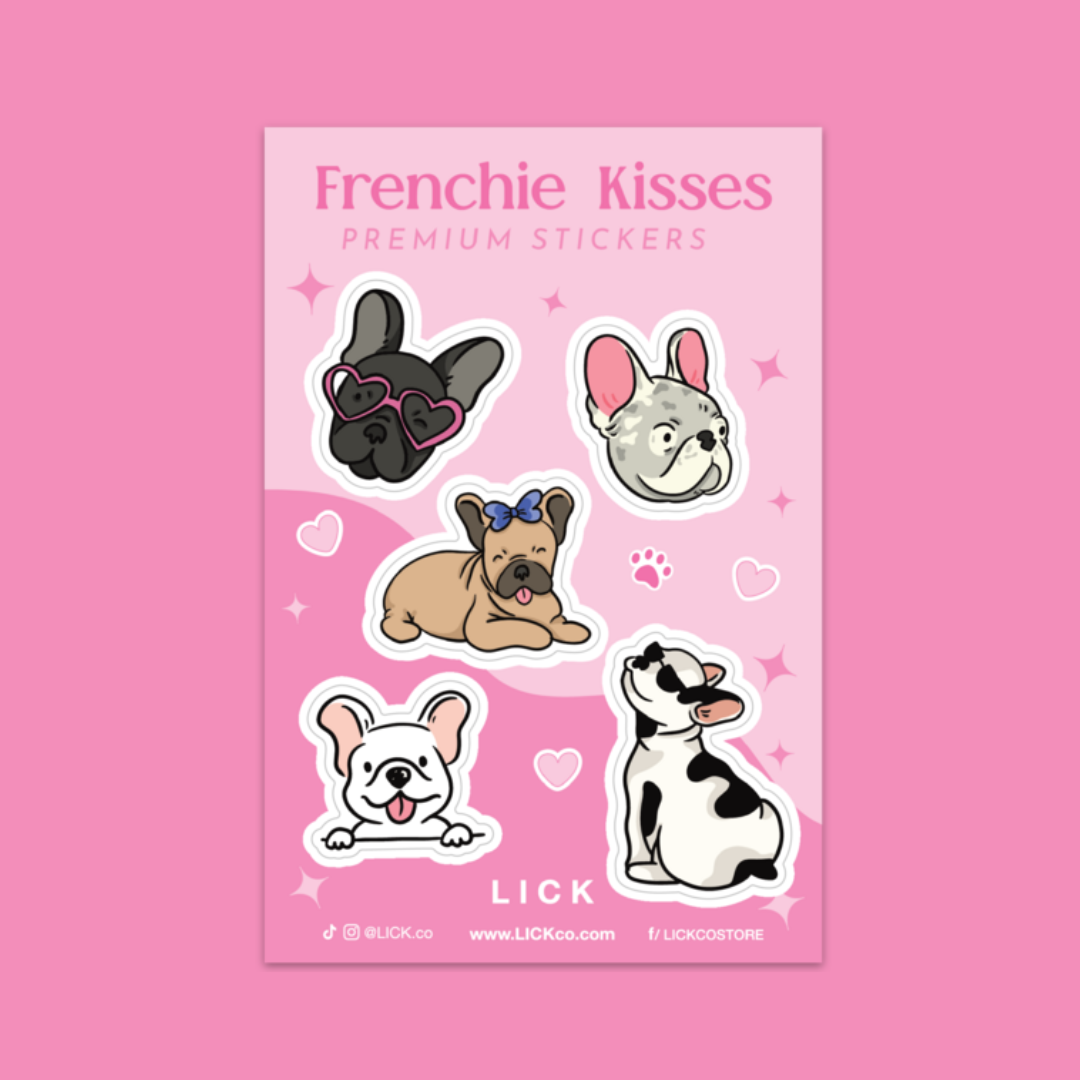 Introducing "Frenchie Kisses" mini sticker sheets! Featuring five adorable French Bulldog stickers, perfect for adding charm to your planners, laptops, and more. Get yours today and spread the Frenchie love!